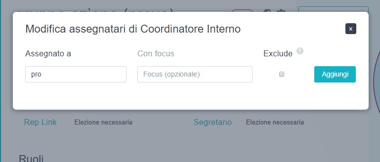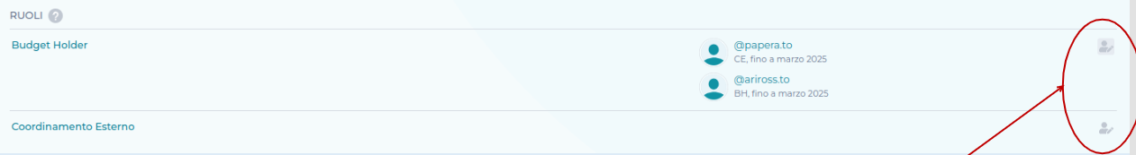 Aggiungere una persona a un ruolo che abbiamo creato noi (ex: coordinatore interno). Basta cliccare sull’icona con la persona+ e selezionare la persone che ricopre quel ruolo